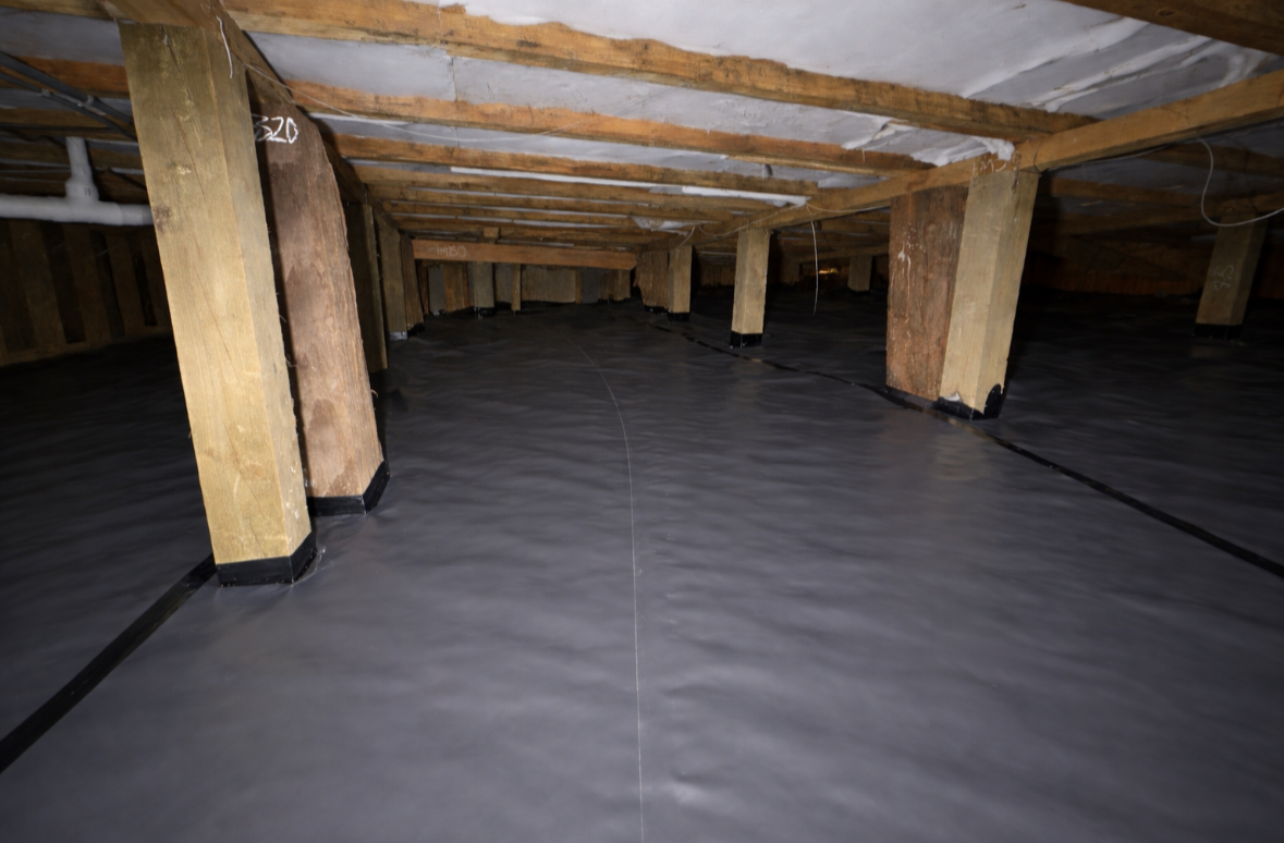 Under house vapour barriers installed to reduce ground moisture, protect subfloor framing, and improve overall building durability, especially in damp or winter prone conditions.